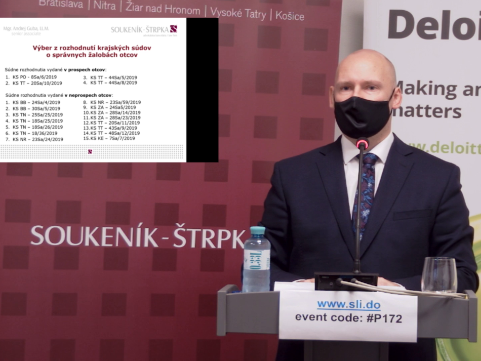 Dňa 9. 11. 2020 sa pod záštitou tímu EU Generation uskutočnila online konferencia „Pracovné právo 2020“. So svojim príspevkom na v súčasnosti veľmi diskutovanú tému možností nároku otca na materské počas rodičovskej dovolenky v súbehu s výkonom práce na nej vystúpil aj Mgr. Andrej Guba, LL.M., vedúci advokát a špecialista na pracovné právo z advokátskej kancelárie SOUKENÍK – ŠTRPKA, s. r. o.
